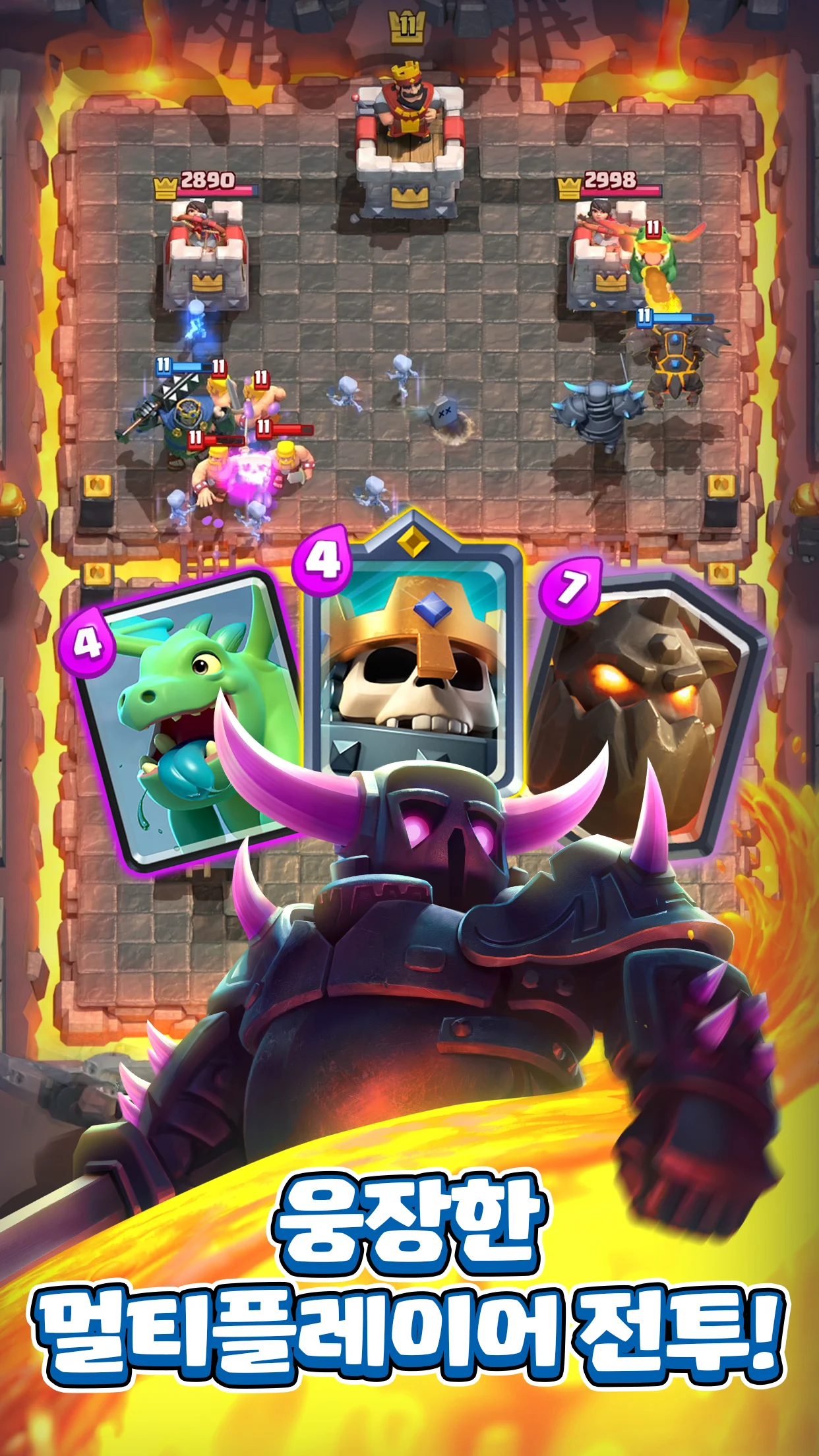 • **클랜 시스템 및 커뮤니티:** 클랜에 가입하여 다른 클랜원들과 카드를 교환하고, 친선전을 통해 전략을 연습하며, 클랜전에서 협력하여 보상을 획득할 수 있습니다.
